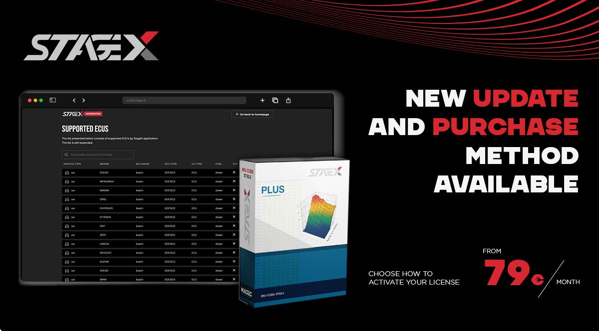 Choose when and how to use StageX, the remapping software for engine control units (ECUs) and automatic transmissions (TCUs).
